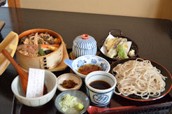 すき焼き 刺身 えび付き天ぷら 茶碗蒸し